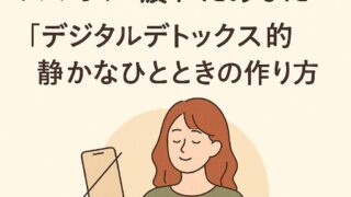 自分と親友 👉 スマホに疲れたあなたへ。今日からできる「デジタルデトックス的」静かなひとときの作り方 気づけばスマホの通知に一日中追われていませんか。LINE、SNS、メール…便利なはずのデジタル機器が、いつの間にか心を落ち着かせる時間を奪っていることもあります。この記事では、そんな忙しい毎日を過ごすあなたに向けて、無理なく取り入れられる「... 2025.12.01 自分と親友