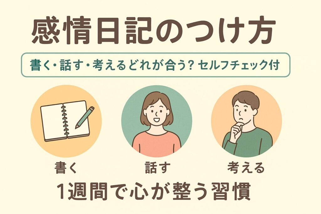 👉 感情日記のつけ方|書く・話す・考えるどれが合う?セルフチェック付き“1週間で心が整う習慣”